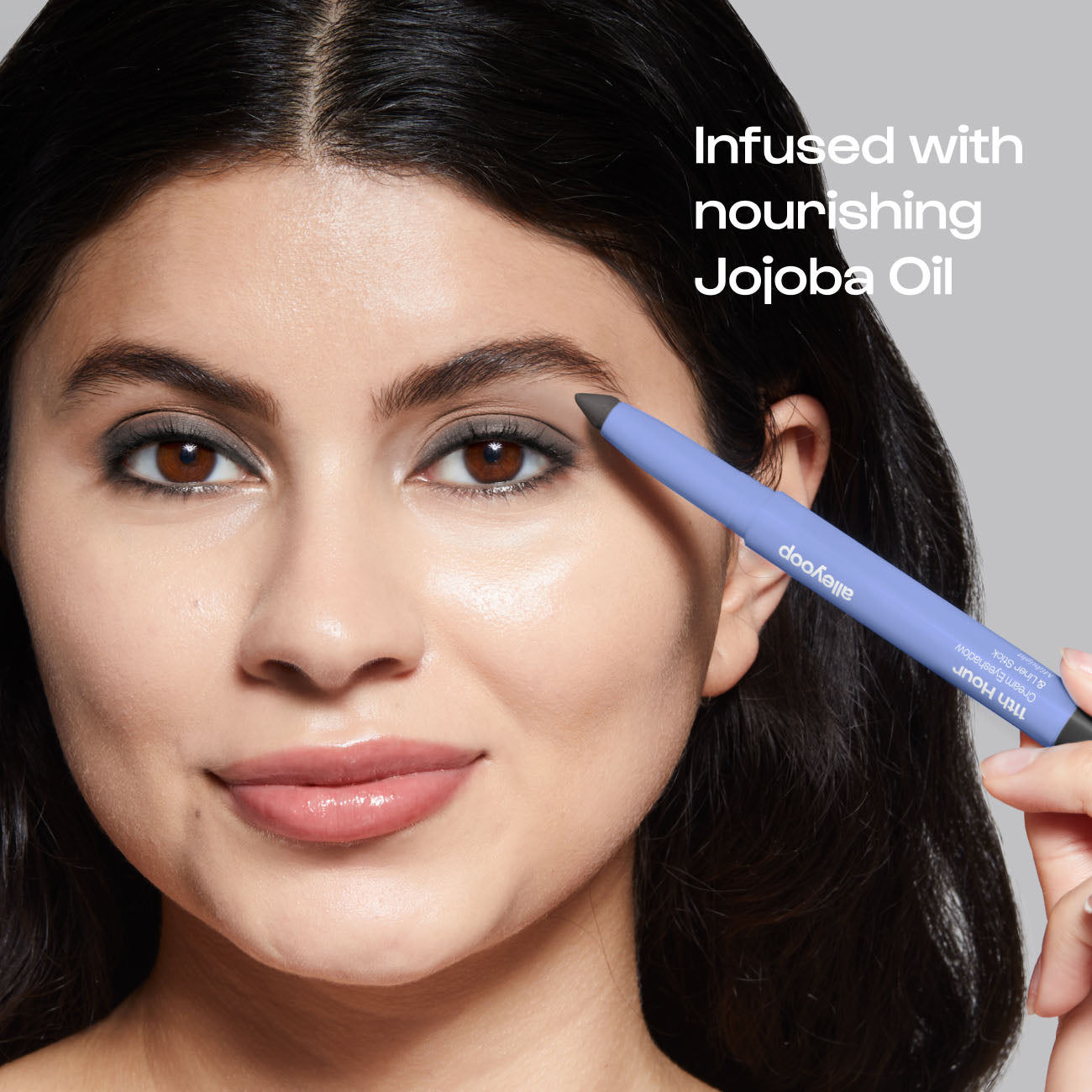 While this product is highly pigmented, it’s also very easy to blend out and sheer out, depending on the look you’re looking for. For a sheer wash of color, simply blend 11th Hour out with fingers or a brush. Layer on more pigment for a more dramatic look. Don’t forget the built-in sharpener to line along your waterline or tightline!
