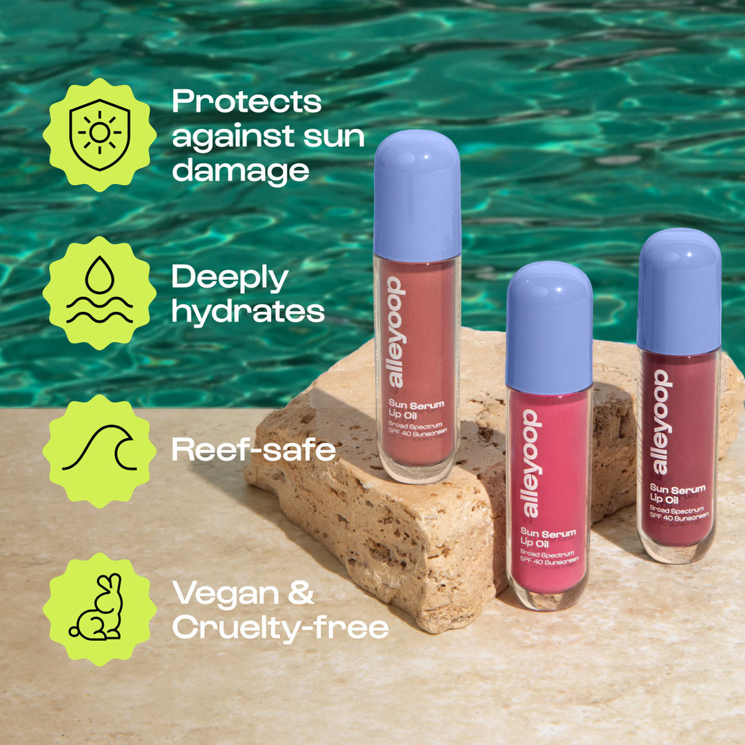 SPF isn’t just for your face—Sun Serum Lip Oil shields the delicate skin on your lips with lab-patented mineral SPF technology that blocks 97%+ of UV rays.