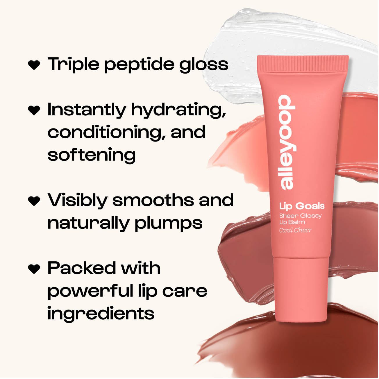 Lip Goals Triple Peptide Gloss: A cushiony glossy lip balm hybrid that delivers next-level nourishing hydration, a sheer wash of color, and glassy shine. Choose from 3 your-lips-but-better-shades or go natural with Clear.
