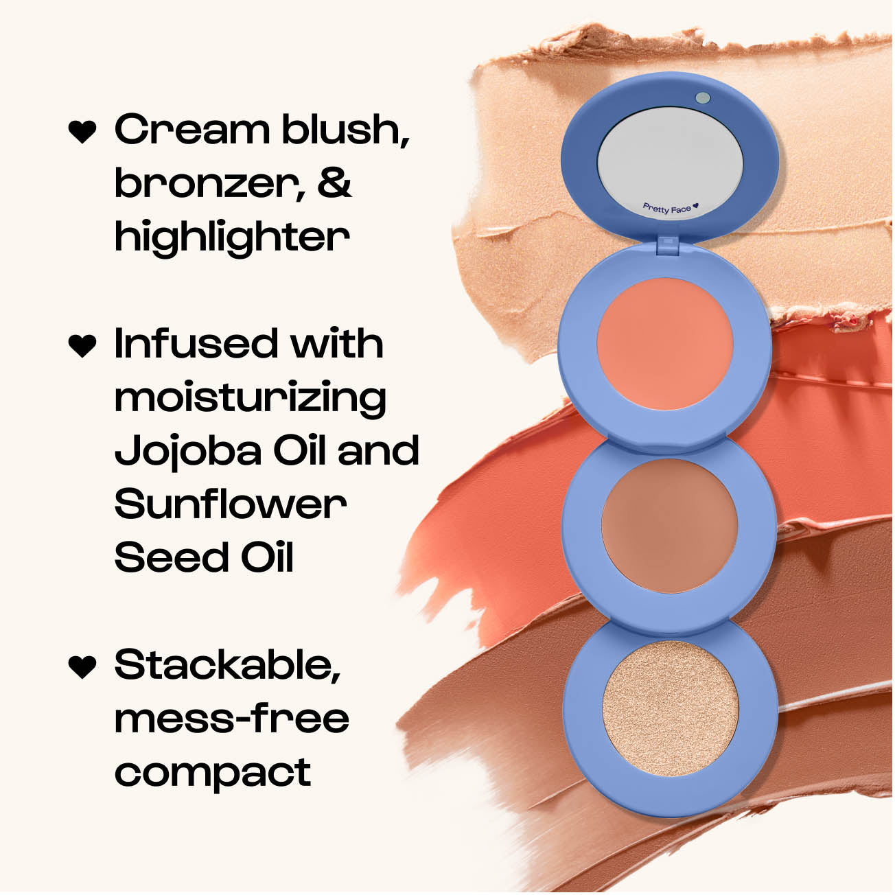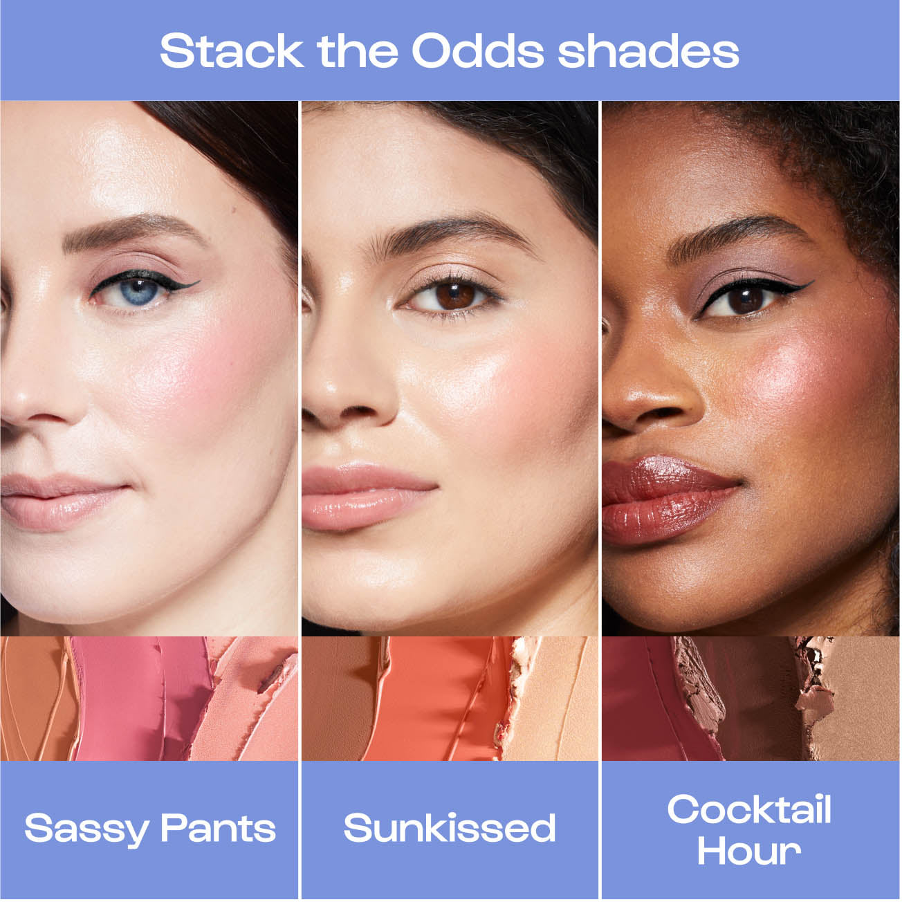 - Stack the Odds Cheek Trio: Buttery formulas that melt into skin for a visibly smoother, healthier-looking, lit-from-within glow.